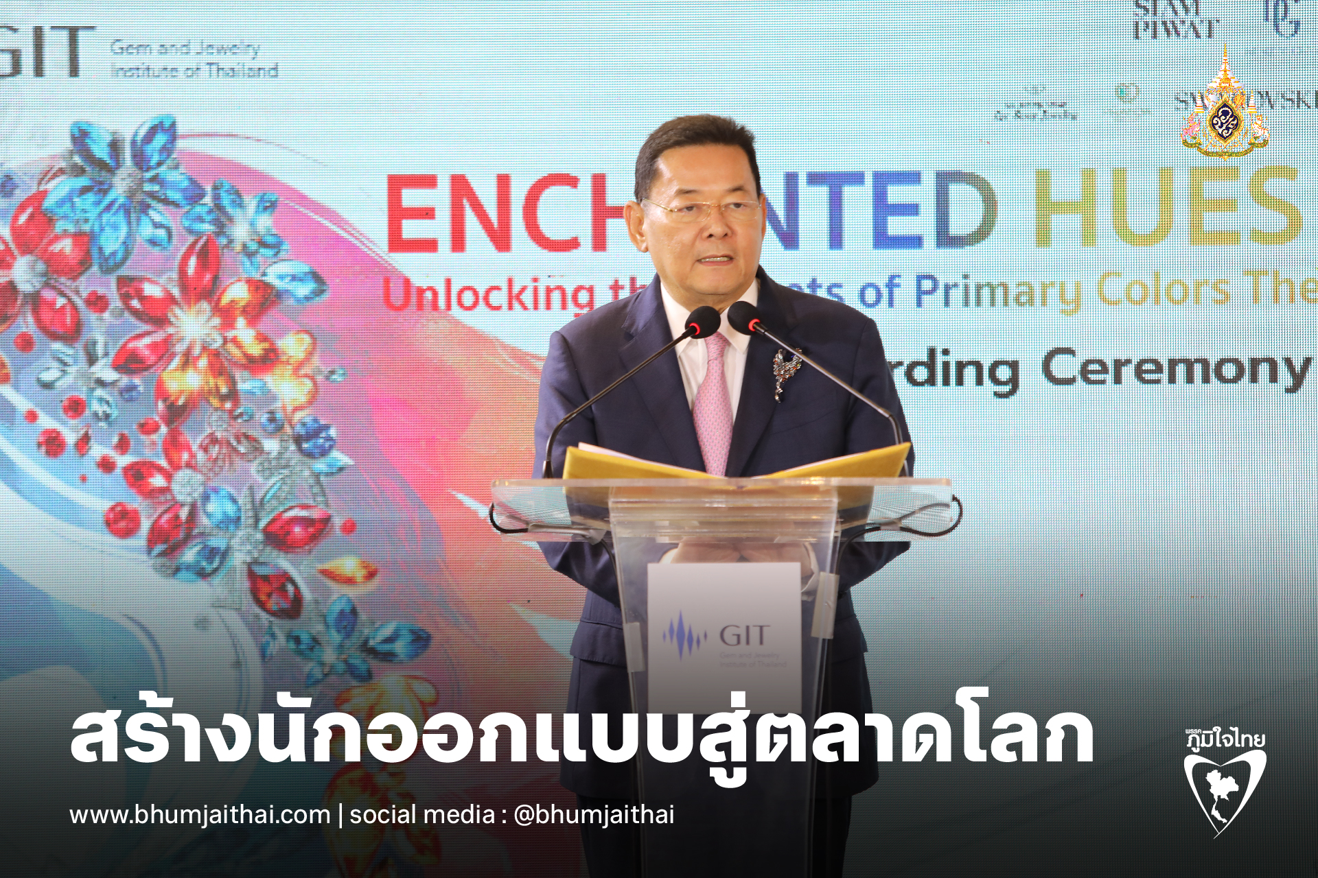 “นภินทร” ชื่นชม GIT สร้างนักออกแบบสู่ตลาดโลกผ่านการประกวดออกแบบเครื่องประดับสุดตระการตา ภายใต้ธีม “Enchanted Hues - Unlocking the Secrets of Primary Colors Theory” ในพิธีมอบรางวัลการประกวด GIT World’s Jewelry Design Award 2024