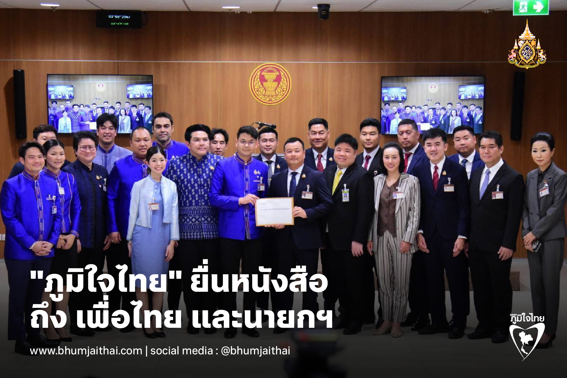 "ภูมิใจไทย" ยื่นหนังสือ ถึง เพื่อไทย และนายกฯ