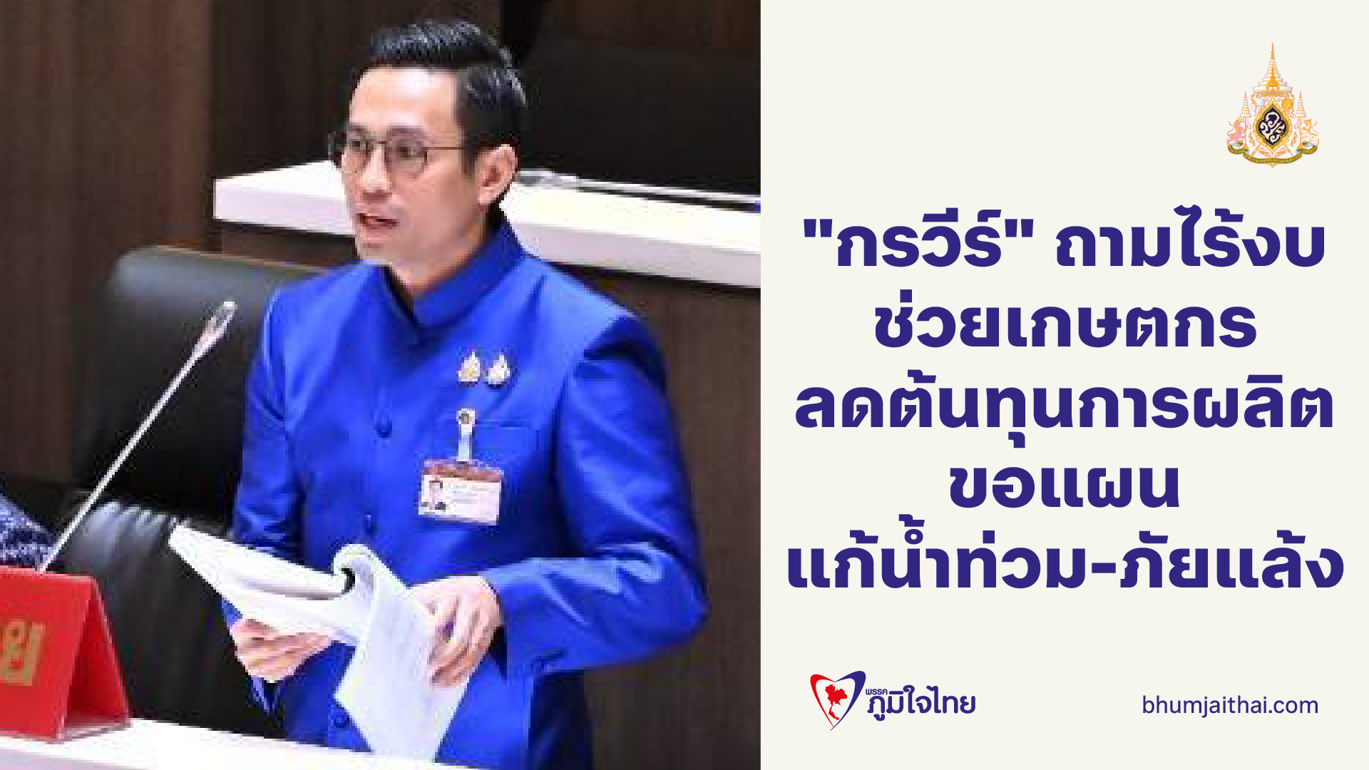 "กรวีร์" ถามไร้งบช่วยเกษตกรลดต้นทุนการผลิต ขอแผนแก้น้ำท่วม-ภัยแล้ง