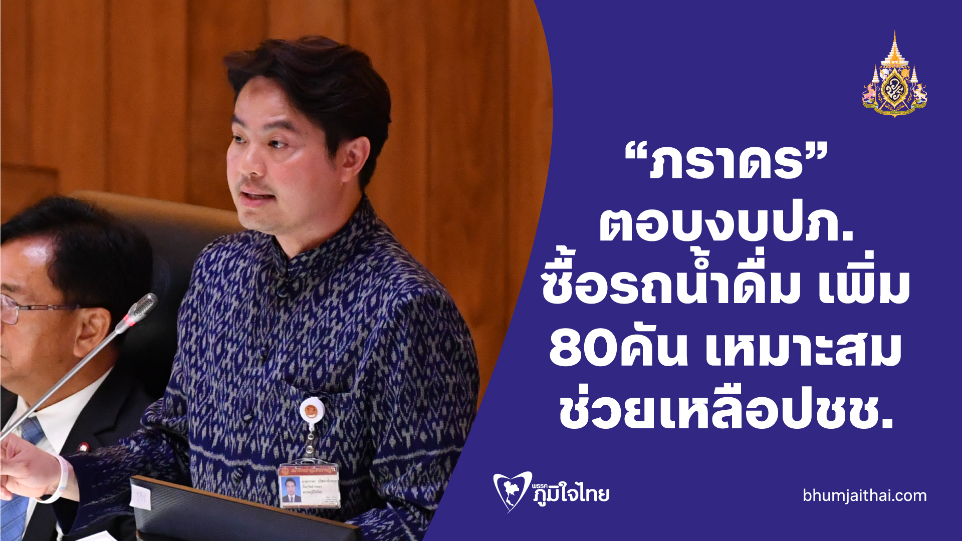 “ภราดร” ตอบ งบปภ. ซื้อรถน้ำดื่มเพิ่มเติม 80คัน เหมาะสม เพื่อบรรเทาความเดือดร้อนของประชาชน
