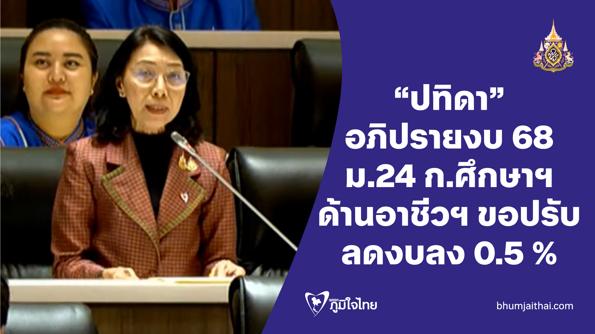 “ปทิดา” อภิปรายงบปี 68 ม.24 ของก.ศึกษาฯ ด้านการอาชีวฯ ขอปรับลดงบลง 0.5 %