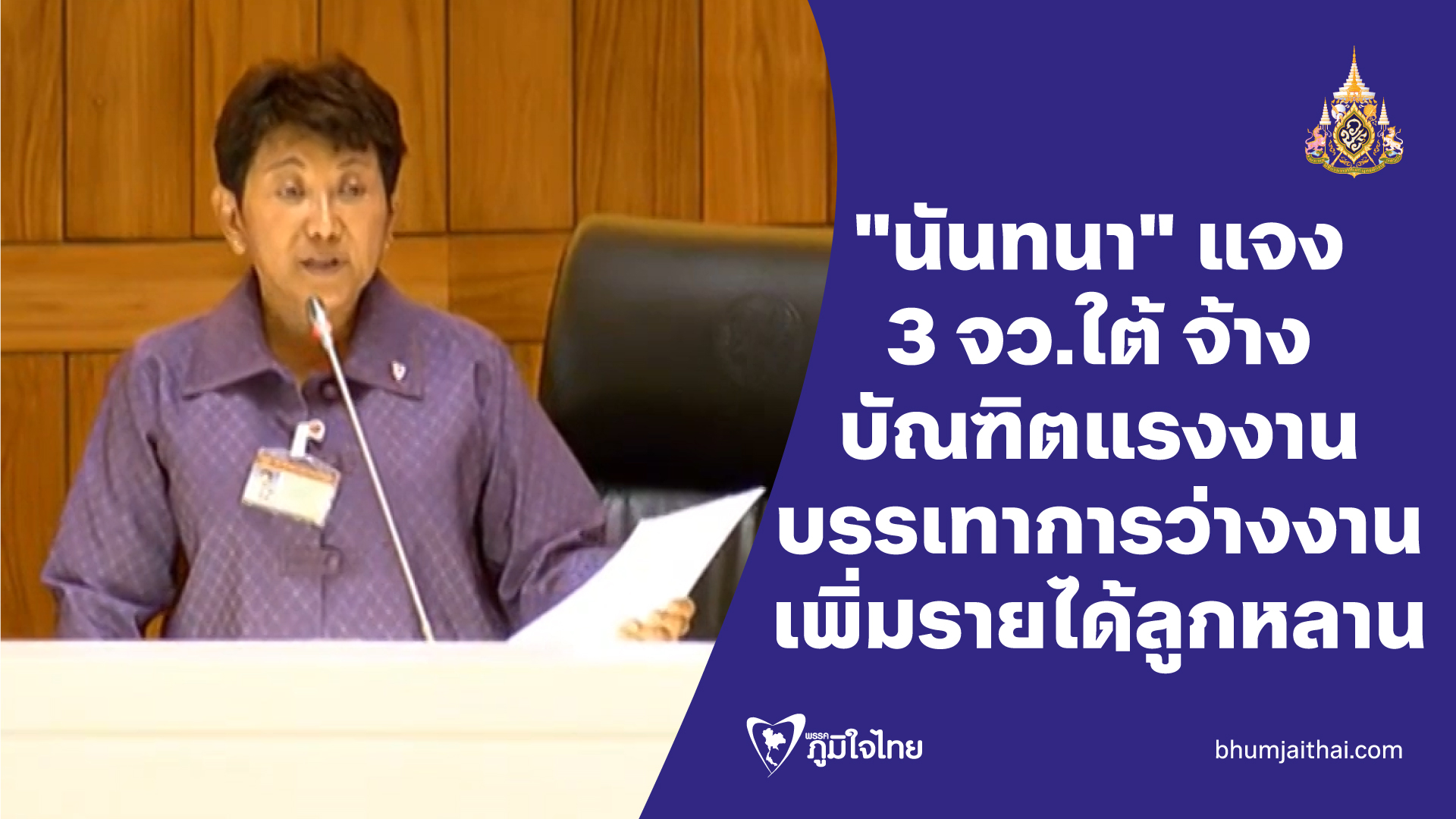 "นันทนา" แจง จ้างบัณฑิตแรงงานแล้วกว่า 1,221 คน บรรเทาการว่างงาน เพิ่มรายได้ให้ลูกหลานในจังหวัดชายแดนใต้ ชี้จำเป็นพัฒนาทักษะแรงงาน รองรับภาคอุตสาหกรรมและการท่องเที่ยว